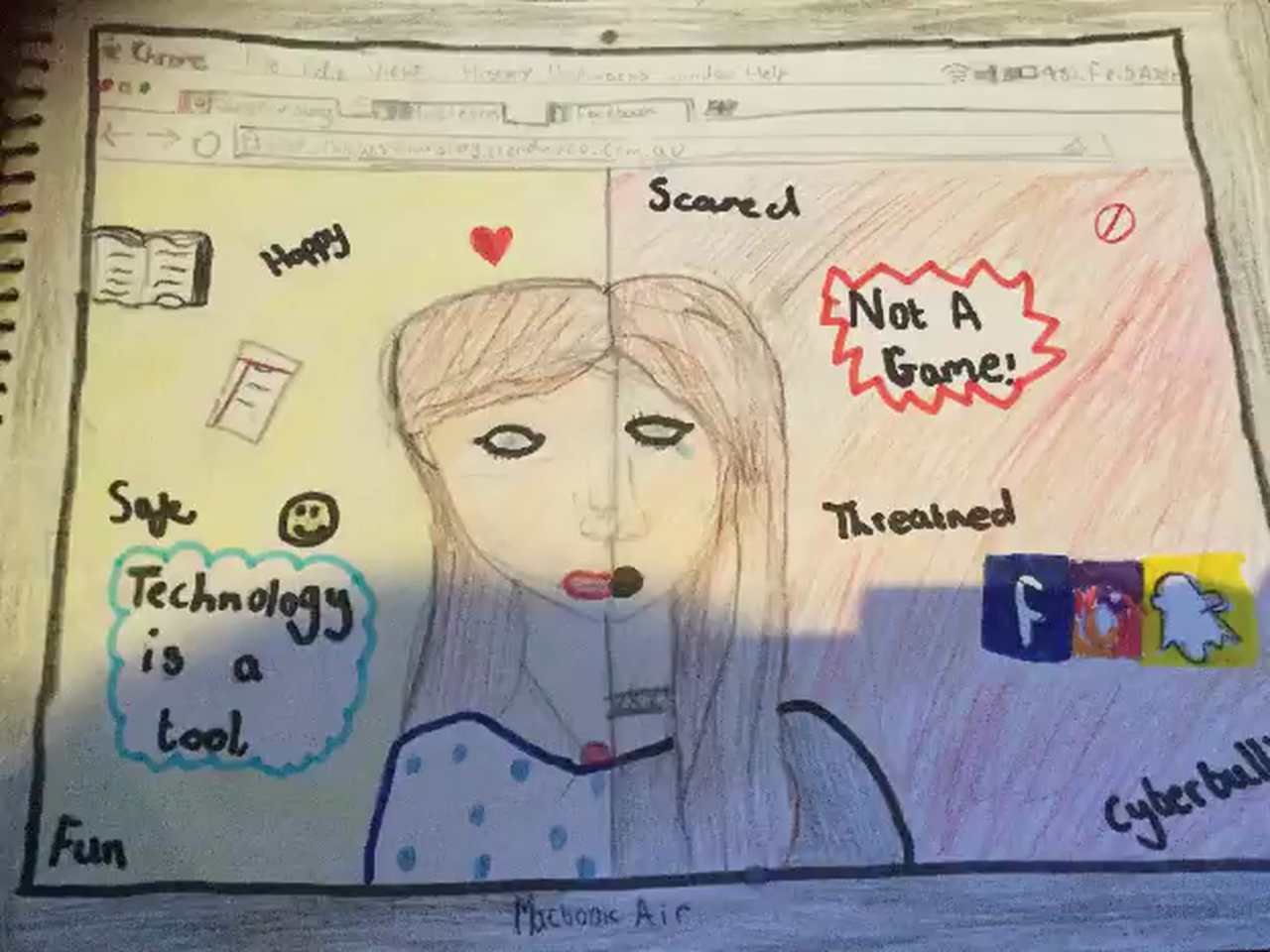 What me poster is about I you could be happy or sad depending on what you use the internet for. If you use the internet to help you with homework then that is fine but some people don’t think what they are saying on social medias such as facebook, Instagram, snapchat, twitter. They make people sad by cyberbulling people and that is not okay.